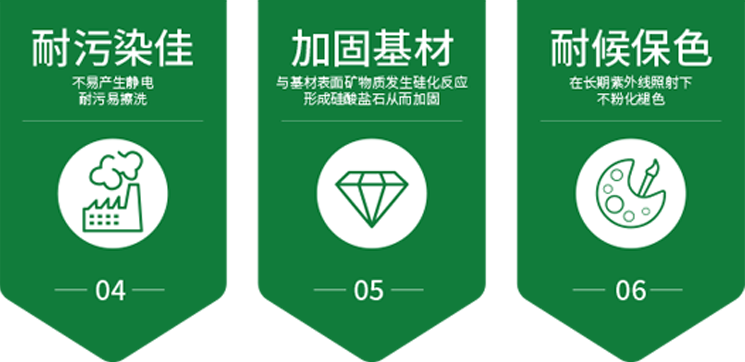 弗克風?硅質漆是單組分的水性無機涂料,采用無機硅酸鹽高分子復合技術,優選特種硅酸鹽材料、改性助劑,突破性地解決了乳膠漆耐黃變差、耐污性差、壽命短的缺點, 具有高耐候性和耐火性的健康型涂料特點。